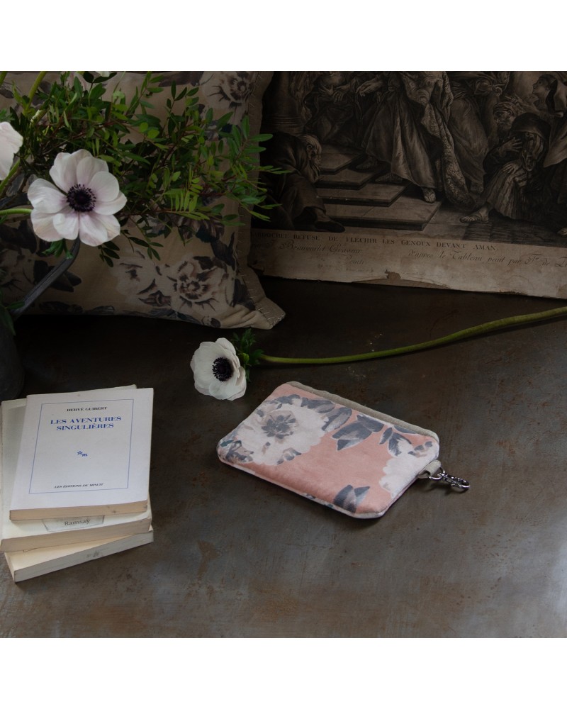 ANEMONE Trousse plate 20x13 cm - velours de coton - Zip pour la fermeture
