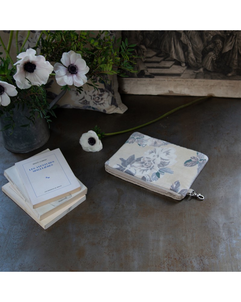ANEMONE Trousse Plate Large 26x18 cm en velours de coton, doublé coton, Zip pour la fermeture